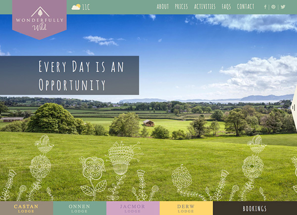 柔和色可以作为导航的手段,是因为它们避让了其他部分的设计。比如,Wonderfully Wild中,用户最先看见照片并做出反应。导航元素与主要内容融合地很好,但由于颜色的选用,它并没有妨碍主要视觉内容。