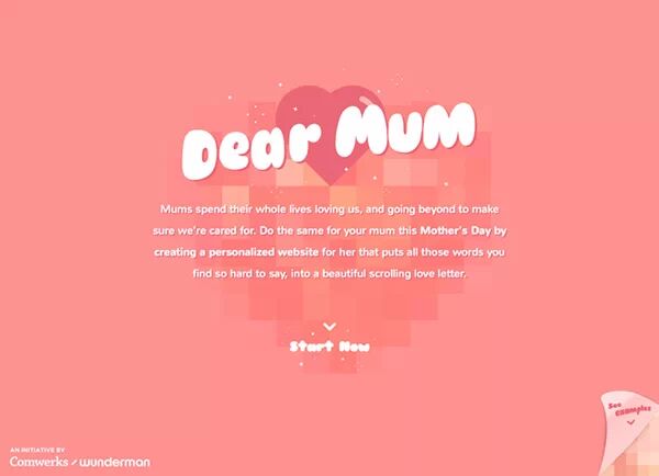 处理柔和背景色的一个常见的趋势,就是像Dear Mum这样,使用单色调的配色方案,对一种颜色进行深浅变化。单色调能够与白色的文字元素产生美妙的视觉对比。搭配合适的字体,这种技巧也能打造时髦的现代感。